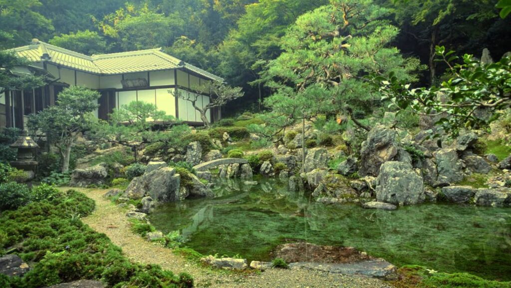 何よりも特徴的なのがやはり二面性があるという特徴です。普段は枯山水庭園の様式をしていますが、一定以上の雨が降ると、山の湧き水が流れて溜まり、伏流水となって、庭園に水を張り巡らします。現在でも枯山水庭園と池泉庭園の二つの姿をもった庭園はけして多くはありません。昭和以降に何か所か作庭されているようですが(京都の光明院など)江戸時代の作品となると二か所ほどしか確認をされていないそうです。一つが沖縄県にあるということですので、本州は青岸寺だけとなります。